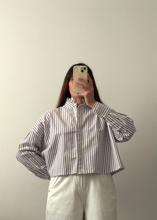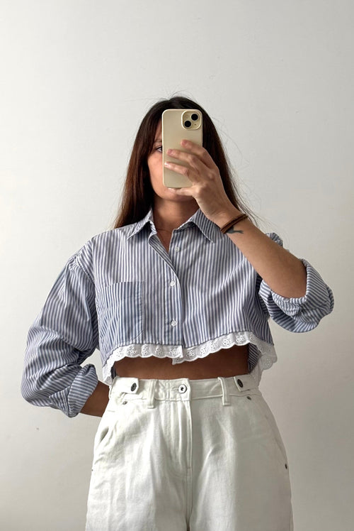 Chemise col volant Rayée bleu et blanc – Pièce unique